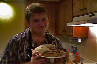 — Curried Rice with grilled Chicken tenders and Pide bread.